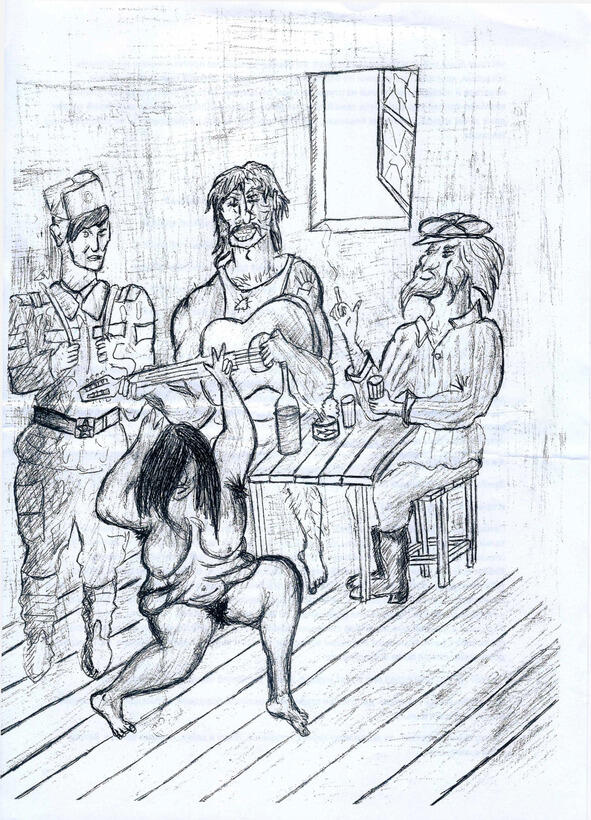 Ты энто дембельнулся, а идти некуда? Но энто не беда пойдем ко мне в кочегарку посидим, перекантуешся у меня, а там видно будет, татарчата мои дома, пожрать сготовят, пузырек раздавим.