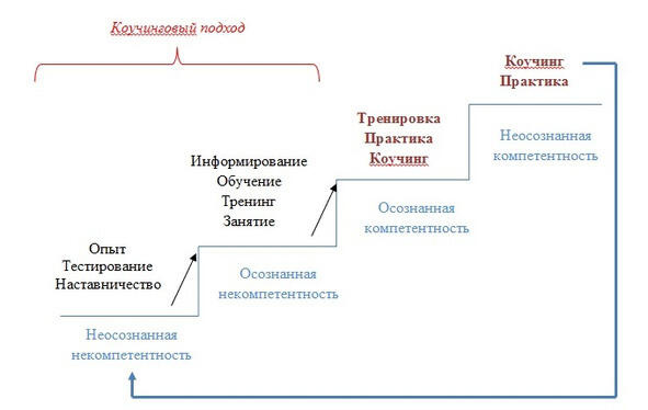 В каких же ситуациях прибегают к коучингу, и в каких находит применение коучинговый подход? Для ответа на этот вопрос рассмотрим лестницу компетентности (рис. 4).