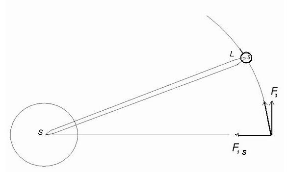 L точка Лагранжа, FS движущая сила, F3 поперечная сила