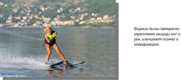 Результат после 23 месяцев: вы перестанете падать и научитесь выполнять различные трюки например, прыжки на водных трамплинах. Стоимость тренировок станет ниже, если вы купите абонемент на сезон. За одно лето успеете хорошо «подкачать» ноги, укрепить пресс и мышцы рук.