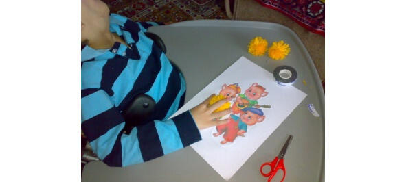 Совместная деятельность: приклеивание пампушек с помощью двойного скотча.