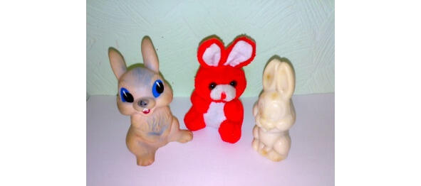 Материалы: картон, пластилин, аппликация, двойной скотч, синие пампушки, игрушки зайцы (пластмассовый, меховой, из мыла).