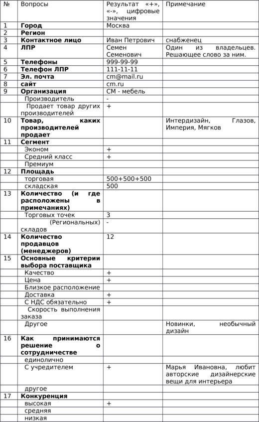Простые вопросы, а сколько дополнительной информации! Именно она в дальнейшем облегчает ход переговоров.