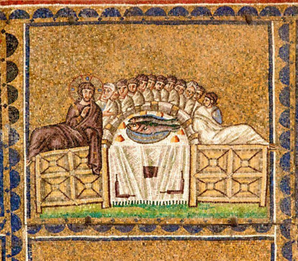 Тайная вечеря. Раннехристианская мозаика. VI век.