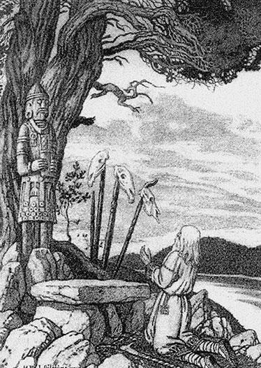Рис. 15. Славянский волхв у языческого святилища. Художник Иван Билибин