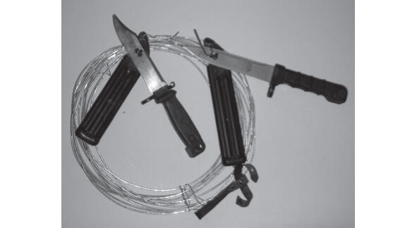 Фото 6. Резка проволоки комплексом штык-нож ножны