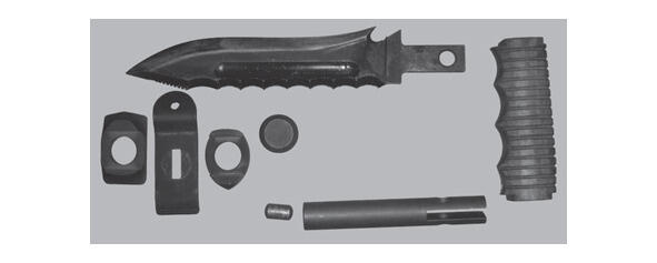 Фото 12. Сложный вариант рукоятки боевого ножа НРС-2 с вмонтированным в нее устройством бесшумной и беспламенной стрельбы