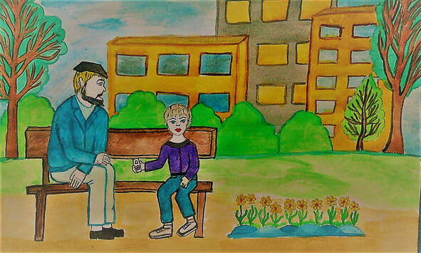 Ванечка сел на лавочку в тенёк и стал играть в игру на телефоне. К нему на лавочку присел дед, этого деда Ваня видел уже несколько раз когда выходил во двор погулять. Ванечка уже общался с ним дня два назад, Дед тогда также сидел на лавочке и спросил у проходящего Ванечки, сколько сейчас времени. У Ванечки телефона с собой не было, он шёл из садика, а мама остановилась поговорить с соседкой. И Ванечка торопился и бежал к играющим в прятки мальчишкам. Сейчас дед внимательно посмотрел на Ванин телефон и произнёс: «Какой экран маленький!» На что Ваня ответил: «Пойду в школу, мне купят сенсорный телефон, а Алёне ноутбук». И тогда дед как-то с грустью произнёс: «А мне сын новый ноутбук подарил, а старый ещё почти как новый, был бы у меня внук, ему бы отдал, а вот нет у меня внука, я ещё молодой дед». Ваня посмотрел на деда внимательно и подумал, что выглядит дед как-то неестественно, фуражка натянута сильно на лоб и кожа его лица очень загорелая и морщинистая. Дед подмигнул Ване и произнёс: «Я могу и тебе его отдать, только его с собой у меня нет, он дома, вон в том доме напротив. Если ты сходишь со мной, заберёшь его, то мама тоже обрадуется». «Конечно обрадуется, мы просили папу купить нам ноутбук, папа сказал что как только ипотеку погасим осенью, так обязательно купит всем по ноутбуку. Папа говорит, что электроника это будущее наших детей». «Ну так пошли за будущим». Дед поднялся и пошёл к соседнему дому.
