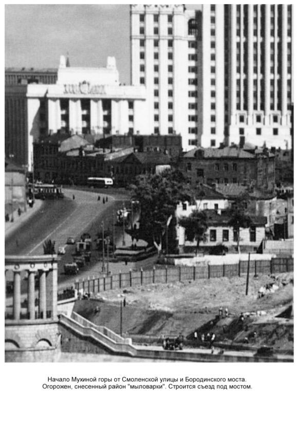 Теперь поподробнее о Мухиной горе, вернее, о её точном положении и названии. На картах Москвы это место обозначено там, где и была «мыловарка», а точнее правее Бородинского моста на левом берегу Москвы-реки, но в кругах старожилов-москвичей её принято определять следующим образом: