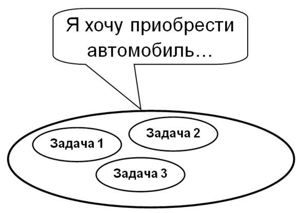 Четвертое. В основе потребности клиента лежат задачи, которые ему надо решить. И часто оказывается, что задачи, требующие решения, существенно отличаются от тех, которые клиент озвучил как свое желание. Например, клиент говорит «Я хочу приобрести автомобиль!» (см. рисунок 6).