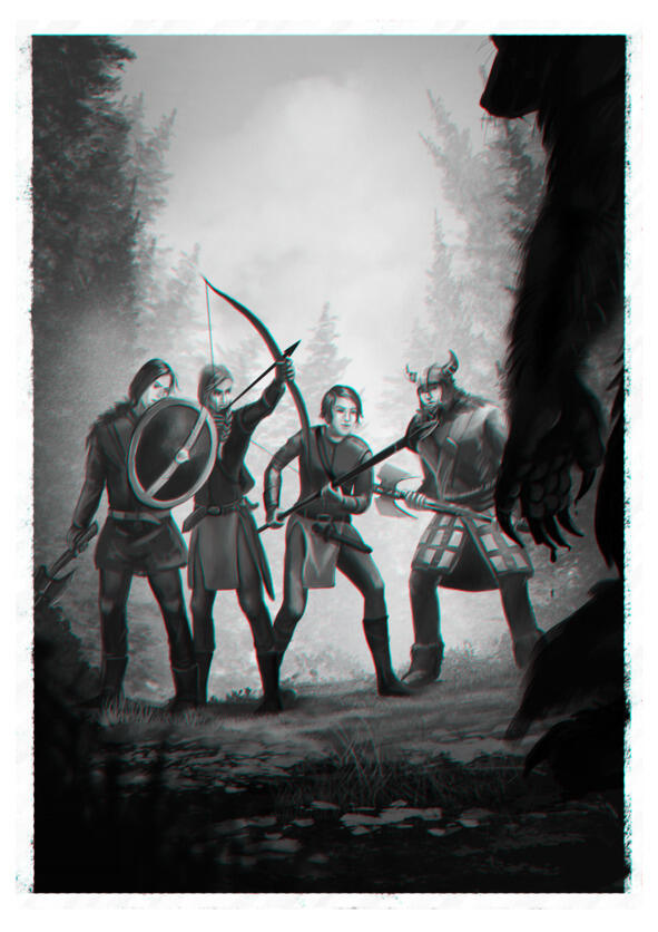 Варгальд взвыл и пошел в атаку. Уйдя в сторону от опасного, но недостаточно быстрого удара, зверь выпустил когти и нацелился в шею воина. Берт напряг все силы и в последний момент поднял тяжелый щит. Острая боль прожгла левую руку: Берт неудачно поставил блок. Отдача от бешеного удара повредила запястье, и щит слетел с поврежденной конечности, оставляя хозяина один на один с древним хищником. Не давая передышки, варгальд закружился вокруг Берта, грозя нанести смертельную рану и положить конец затянувшейся битве. Теперь отступал Берт. Нога предательски зацепилась за корень, и Берт грохнулся на землю. Все произошло слишком быстро. Падая навзничь, парень видел, как варгальд, замерев в прыжке, летит на него с широко открытой пастью. Зверь приземлился на жертву, и Берт понял, что значит быть между молотом и наковальней. Кости затрещали, а рука, державшая топор, онемела. Хватка варгальда была железной. Целясь в шею, зверь разомкнул челюсти Пытаясь выжить, Берт сделал последний рывок.