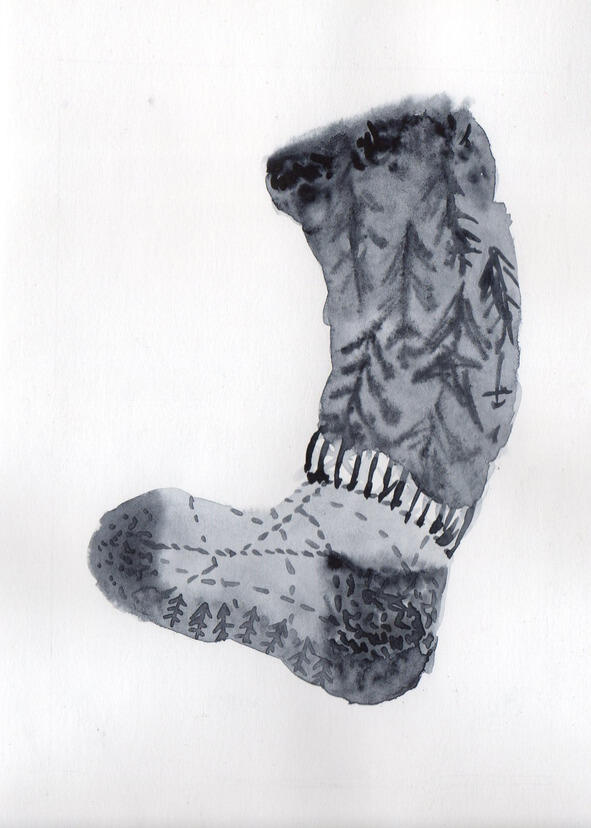 «Мы все чего-то ищем, не правда ли?» проговорил старик обращаясь к Маленьким Штанишкам. Тот замер и смотрел на старика «Наверное так». «И часто так и не находим» улыбнулся старик. Маленькие Штанишки потянулся к старику, который сжимал в руке искомый носок «Потому что не там ищем?». «Нет» сказал старик поднимая руку с носком «потому что мы ищем совсем не то» и швырнул носок в пламя огня.