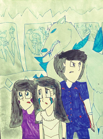 В сопровождении волков дети снова прошли длинными холодными коридорами замка, на этот раз совершенно не обращая внимания на окружающий холод. Наконец перед ними распахнулись последние на этом пути двери впереди была ровная заснеженная площадка, усеянная множеством фигурок. А сразу за площадкой застыл молчаливый лес, отбрасывая фиолетовые блики на розовое снежное поле.
