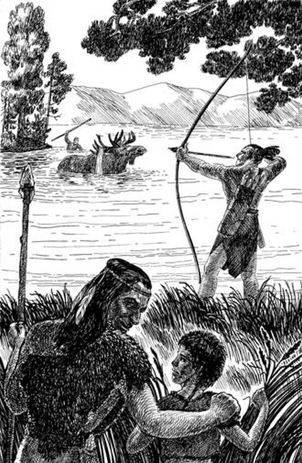 Не желая рисковать добычей, а в случае бегства раненого зверя терять время на его поиски, Синака оставил одного охотника с луком на берегу с подветренной стороны, дабы лось не учуял запах человека.