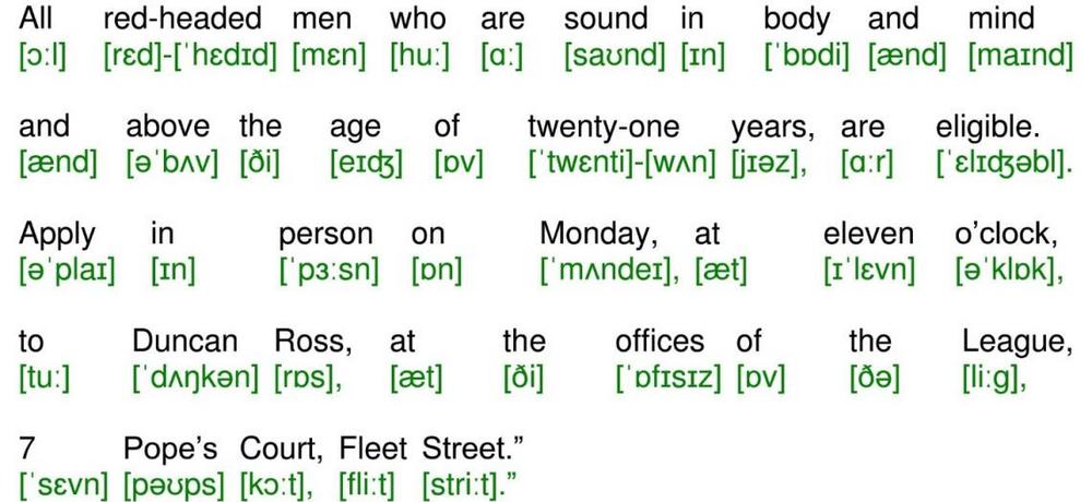 All red-headed men who are sound in body and mind and above the age of twenty-one years, are eligible. Apply in person on Monday, at eleven oclock, to Duncan Ross, at the offices of the League, 7 Popes Court, Fleet Street.