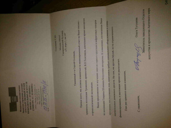 Рис.42 Ответ из ГМИИ на обращение автора