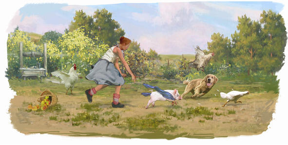 Совершенно растерянный поросенок смотрел на него слезы благодарности душили его, но сказать в ответ он решительно ничего не мог. Всхлипнув, он обнял друга. Обсудив положение, друзья поняли оставаться нельзя. Скоро рассвет, а подкоп только осложнит ситуацию. Нужно бежать! Немного расширив проход, друзья оказались по ту сторону стены и бросились наутек. Луна освещала им путь, а пятки, точнее лапы, только сверкали! Вот он спасительный лес и его непроглядная тьма! Хорошо, что Барри здесь и он знает, что делать. Добравшись до норы, они упали в изнеможении на подстилки и закрыли глаза. Свобода!