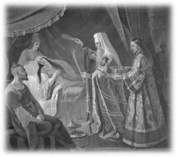«Мы слышали, прочел князь в письме, что у вас есть служитель Божий, который если о чем попросит Бога, Бог слушает его. Отпусти его к нам, и если его молитвами исцелеет моя царица, будете иметь со мною мир; если же не отпустите его пойду опустошать вашу землю».