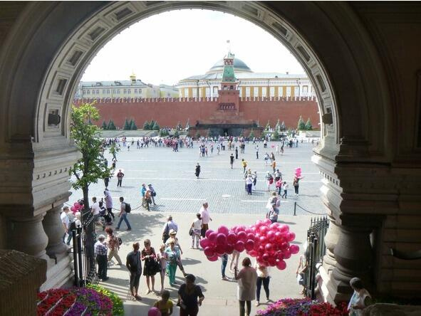 Лучший вид на храм Василия Блаженного и ГУМ открывается с точки за Спасскими воротами (в сторону Москвы-реки). Оттуда он смотрится симметричным, и, кроме того, видно, что элементы его архитектуры повторены в облике ГУМа.