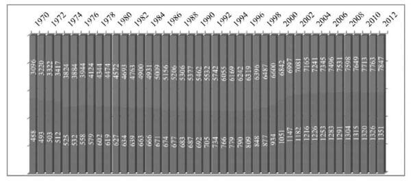 Более наглядно этот процесс виден на Диаграмме 4 ниже, где верхний ряд цифр демонстрирует сумму ратификаций фундаментальных конвенций за соответствующий год, а нижний общую сумму ратификаций: