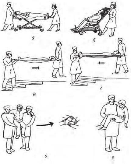 Рис. 12. Способы транспортировки и перемещения пациентов: