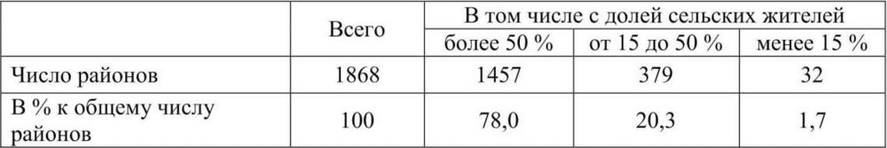 Таблица 1 Распределение административных районов Российской Федерации по доле проживающих на территории сельских жителей в 2009 г.