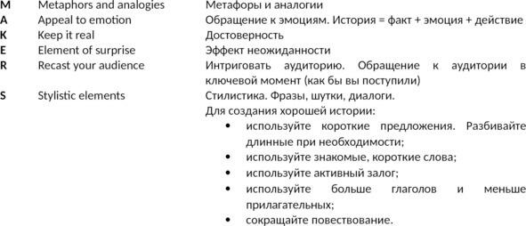 Пол Смит в книге «Мастер историй» предложил простую формулу: CAR = STORY MAKERS