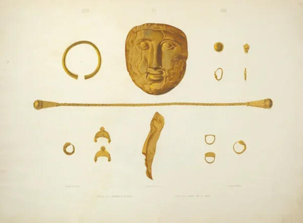 Золотая маска найденная Уваровым в Ольвии: Уваров 1851, c. 43; атлас, табл. XIV; Калашник 2014, c. 265),