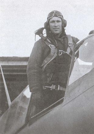 Лучший летчик-истребитель Северного флота Борис Сафонов в кабине «Киттихаука» (одно из последних фото)