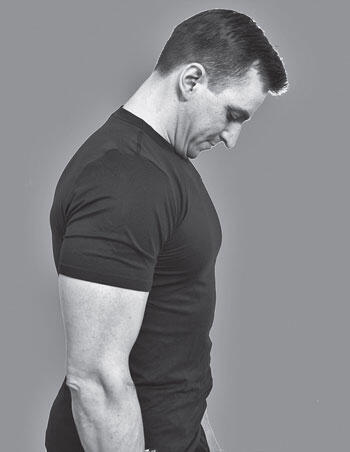 Наклоните голову вперед так, чтобы достать подбородком до груди. Если это затруднительно, то имеется ограничение сгибания шейного отдела позвоночника.