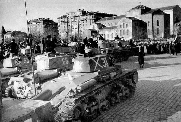 Группа танков LT vz.35 и Pz.38 (t) на одной из площадей Софии перед парадом. Осень 1944 года.