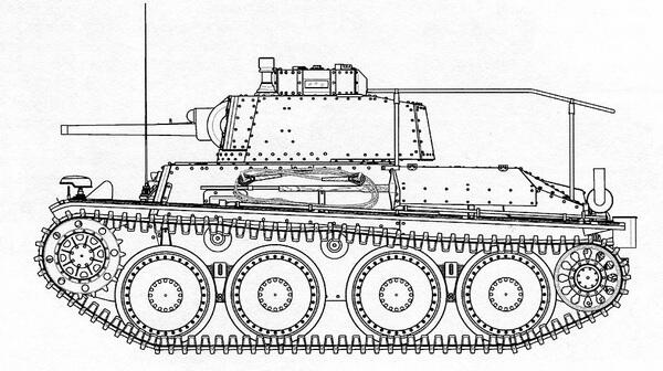 СРЕДСТВА СВЯЗИ. В варианте для чехословацкой армии на танке устанавливалась радиостанция vz.37 с дальностью действия 4 км и возможностью работы только в телеграфном режиме. Немцы оборудовали Pz.38 (t) телефонной радиостанцией Fu 5.