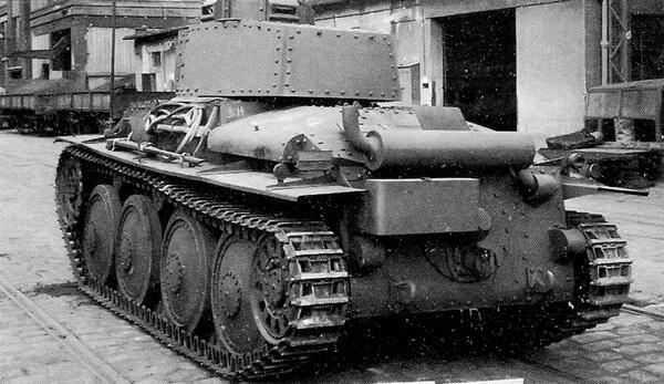 Танк Pz.38 (t) Ausf.G вид с кормы. Хорошо видны глушитель и размещенный под ним кожух прибора дымопуска.