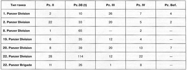 К началу немецкого летнего наступления, помимо 22-й танковой дивизии, танки Pz.38 (t) имелись еще в шести соединениях Вермахта.