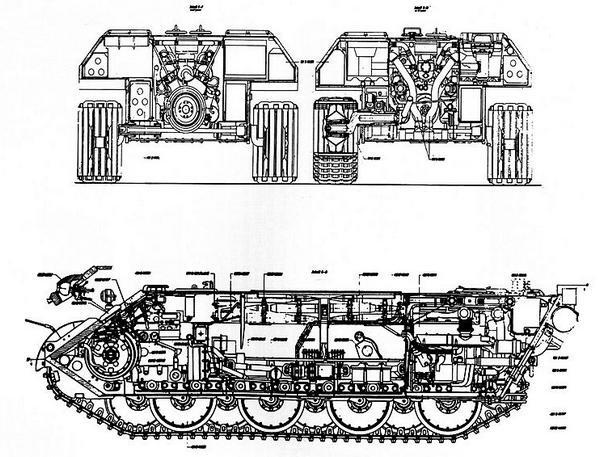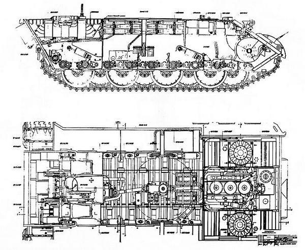Продольные, поперечные разрезы и разрез в плане ранней «Пантеры» с внесёнными в них летом 1943 года изменениями, переименованные в Ausf.А.