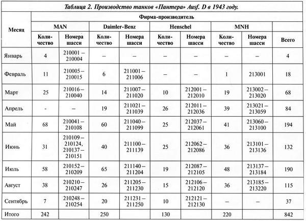 Работы по изготовлению узлов и агрегатов для серийных «пантер» началось в ноябре декабре 1942 года, при этом приходилось постоянно вносить в конструкцию деталей различные изменения. Всё это привело к тому, что весной 1943 года пришлось проводить модернизацию выпущенных машин, для чего отвлекались значительные силы и средства.