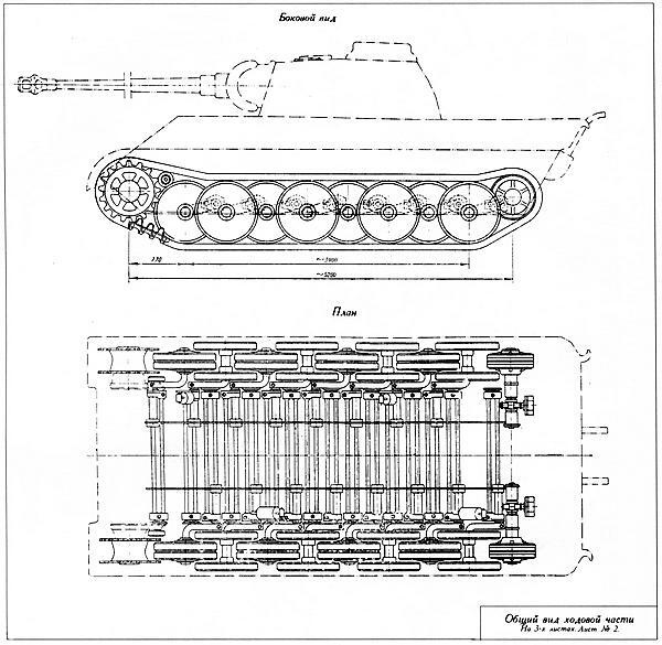 Схема ходовой части танка «Пантера» Ausf.D и гидравлический амортизатор подвески (внизу). Из альбома «Атлас ходовых частей танков», 1946 год).