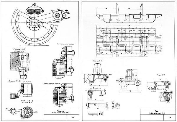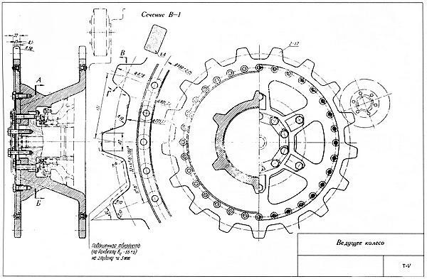 Схема ведущего колеса (вверху) и ленивца (внизу) танка «Пантера» Ausf.D (из альбома «Атлас ходовых частей танков», 1946 год).