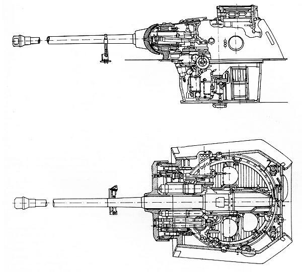 Продольный разрез и разрез в плане башни танка «Пантера» Ausf.D.