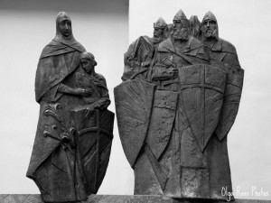 Як быццам з чоўна самога Часу глядзяць на нас жанчына з хлопчыкам і суровыя ваяры іхнія абаронцы. Чалавеку, знаёмаму з полацкай мінуўшчынай, каля гэтай скулыітурнай кампазіцыі адразу ўспамінаюцца імёны князя Рагвалода, княгіні Рагнеды і яе сына Ізяслава, якія стануць героямі наступнага раздзела кнігі.