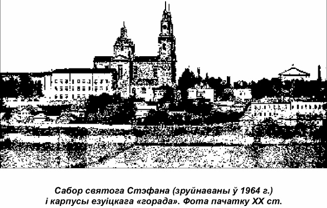 Да канца XVIII стагоддзя езуіты змуравалі каля сабора Стэфана ўжо колькі дзесяткаў будынкаў. Насупроць яго паўднёвага фасада стаяла трохпавярховая пабудова з друкарняй, кнігарняй і тэатрам. У шматлікіх флігелях асталяваліся піваварня з медаварняй, свечны заводзік, васкабойня, сукнавальня, пякарня, кузня, фарбавальня, разніца. У сутарэннях аднаго з флігеляў манахі мелі запасную студню, наверсе аптэку, фармацэўтычную лабараторыю і сушыльню для зёлак. Разам з навучальнымі карпусамі, з дамамі святароў і шпіталем, з разнастайнымі майстэрнямі і свірнамі, з багадзельняй, вяндлярняй, дзвюма стайнямі на 24 і 14 коней, з батанічным садам усё гэта было горадам у горадзе, цалкам прыстасаваным да самастойнага існавання.