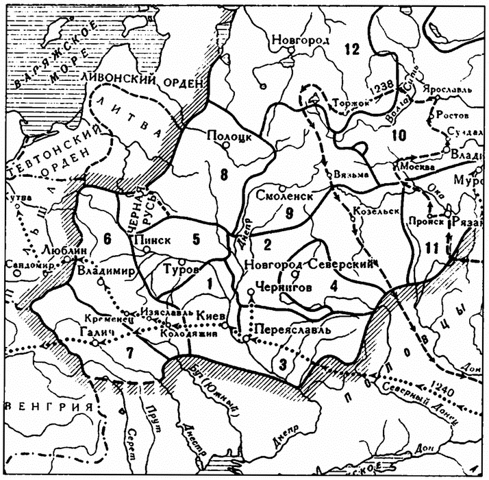 Дату надо исправить на 1219 г. В этом известии литовские князья выступают целой союзной группой со «старейшим» во главе, литовские в собственном смысле слова рядом со жмудскими, а за ними местные «династы»: Рушьковичи, Булевичи, и князья из Лотвы (латышские?), как думают истолковать непонятное Дяволтвы. Запись позднее события: тут записано, как позднее Миндовг устранил Булевичей{4}, ценное указание на приемы Миндовгова объединения.