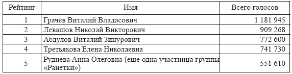 Оставляя за кадром некоторые технические вопросы, связанные с моделью голосования, а также вопросы неизвестных нам информационных кампаний по поддержке участников рейтинга, сделаем обобщающие выводы.