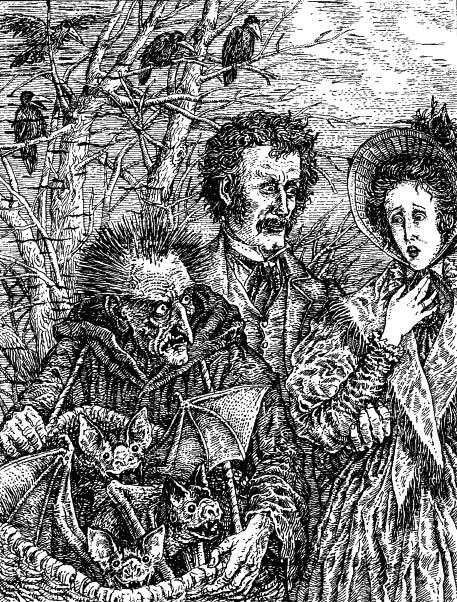 У гэты час бачу я, як злева, ідучы праз лес вузенькай сцежкаю, набліжаецца да нас нейкі згорблены старац у чорнай вопратцы; твар бледны, ясныя вочы свяціліся з-пад густых броваў, за плячыма вісеў накрыты старой чорнаю сукманаю кош. Цікава было даведацца: хто гэты дзіўны чалавек і адкуль ідзе. Параўняўшыся з ім, я спытаўся: