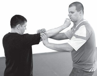 прямой удар сгибом запястья (рис. 25). Внимание: работа незащищенным запястьем в защитное снаряжение может быть причиной травмы! Приведенные здесь и далее примеры работы без защиты запястья продемонстрированы исключительно с дидактическими целями!