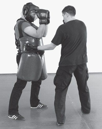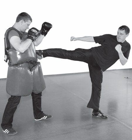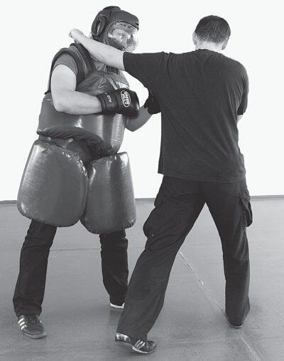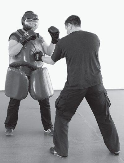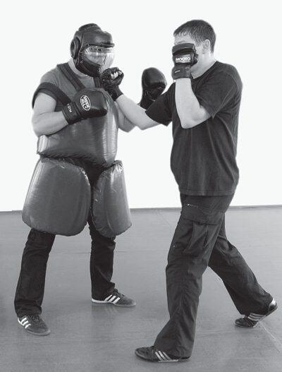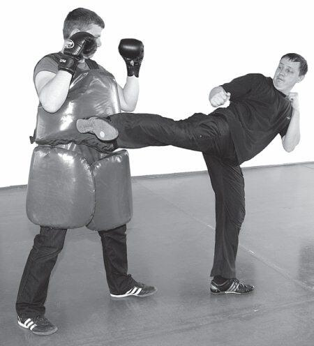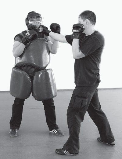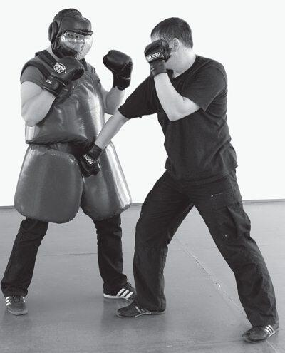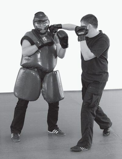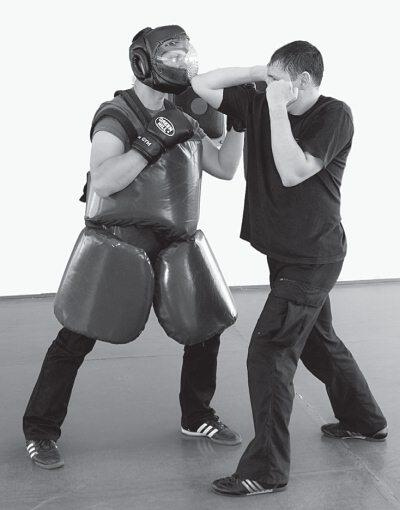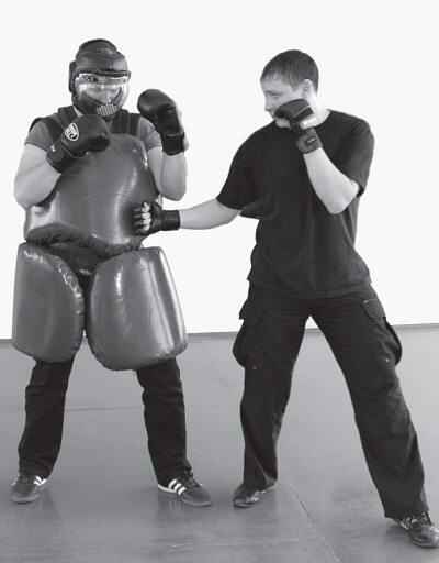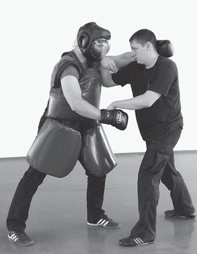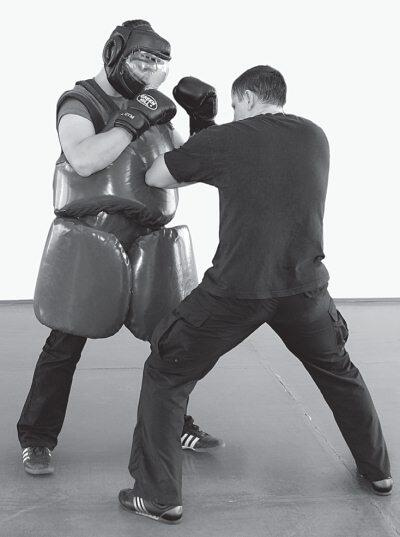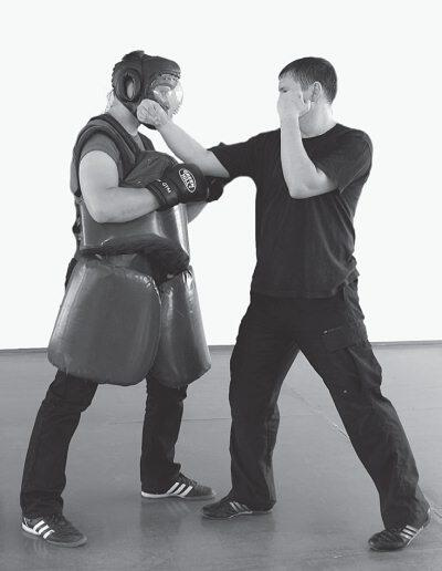 Инновационным являются введение с самого начала постановки ударной техники использования индивидуальной экипировки типа «рыцарь» и работа с партнером. Именно эти аспекты и проиллюстрированы на фотографиях.
