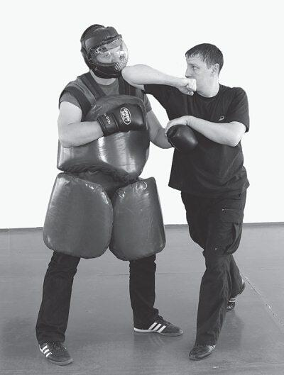 Рис. 35. Удар локтем в голову по диагонали снизу