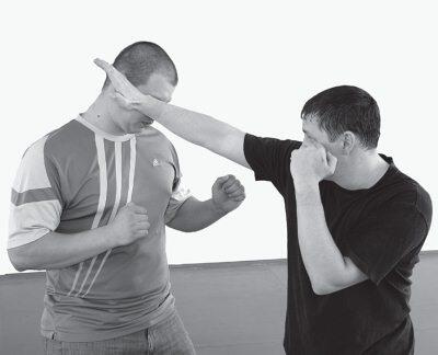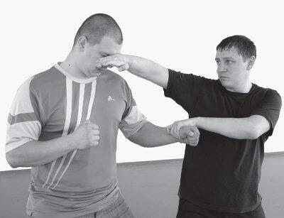 Рис. 44. Секущий удар по глазам вторыми суставами кисти