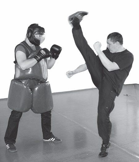 Рис. 70. Удар лбом отработка на стационарном манекене