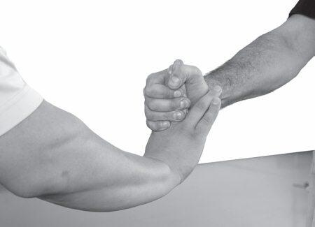 Рис. 76. Болевое воздействие на пальцы кисти отгибанием вверх